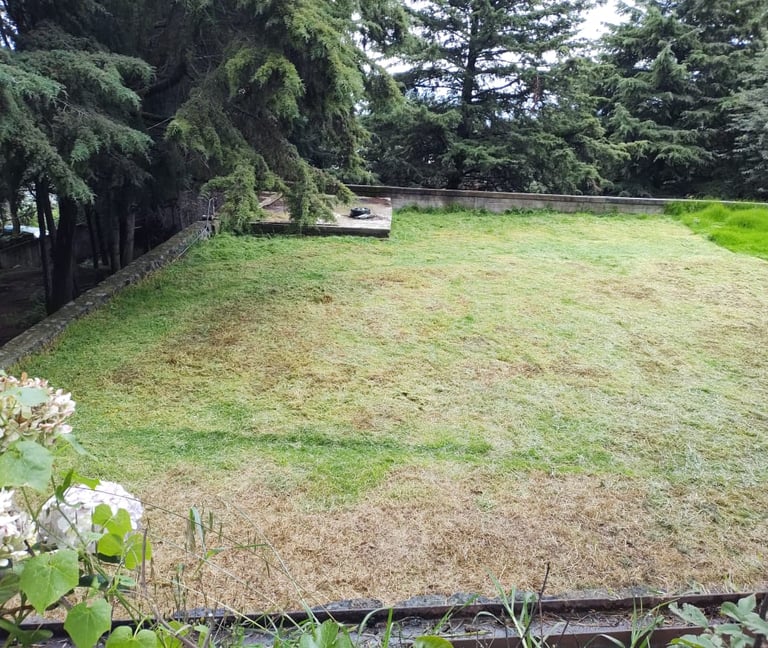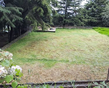 4,033 metros cuadrados de terreno, con bardas de más de 6 metros de altura y más de 70 árboles.